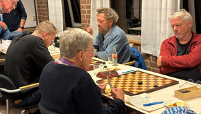 Het was een beetje tamme avond. Dammen is natuurlijk een serieuze aangelegenheid en daar past concentratie en stilte bij. Niets leuker...